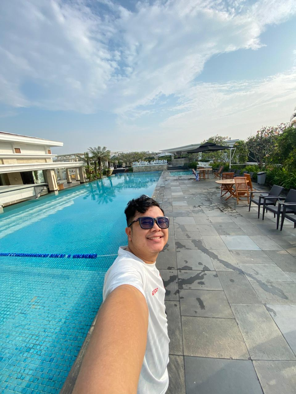 Salah satu daya tarik utama dari The Papandayan adalah nuansa hijaunya yang menenangkan. Area hotel dipenuhi pepohonan rindang, taman tropis, air terjun dengan kolam ikan dan jalur jalan setapak yang menyerupai hutan kecil di tengah kota. Saat berjalan di sekitar kolam renang atau area outdoor lounge, kamu akan merasakan udara segar dan suara gemericik air yang membuat pikiran tenang — seolah sedang berlibur di resort pegunungan, bukan di pusat kota Bandung.